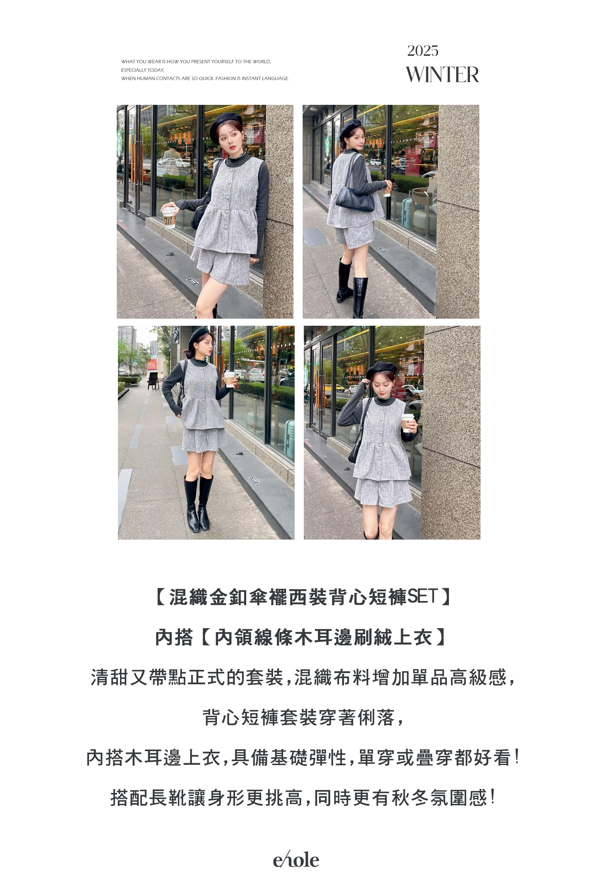 混織布料加上金扣清甜中帶點高級感的套裝!